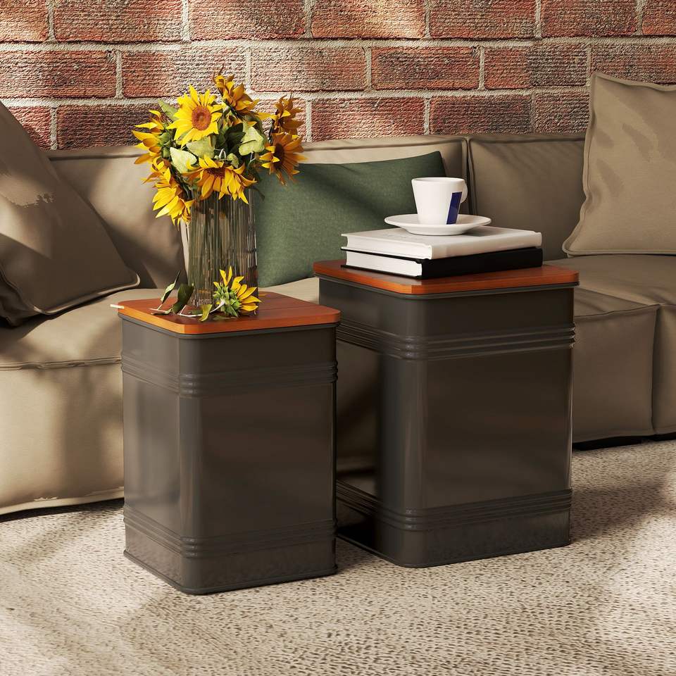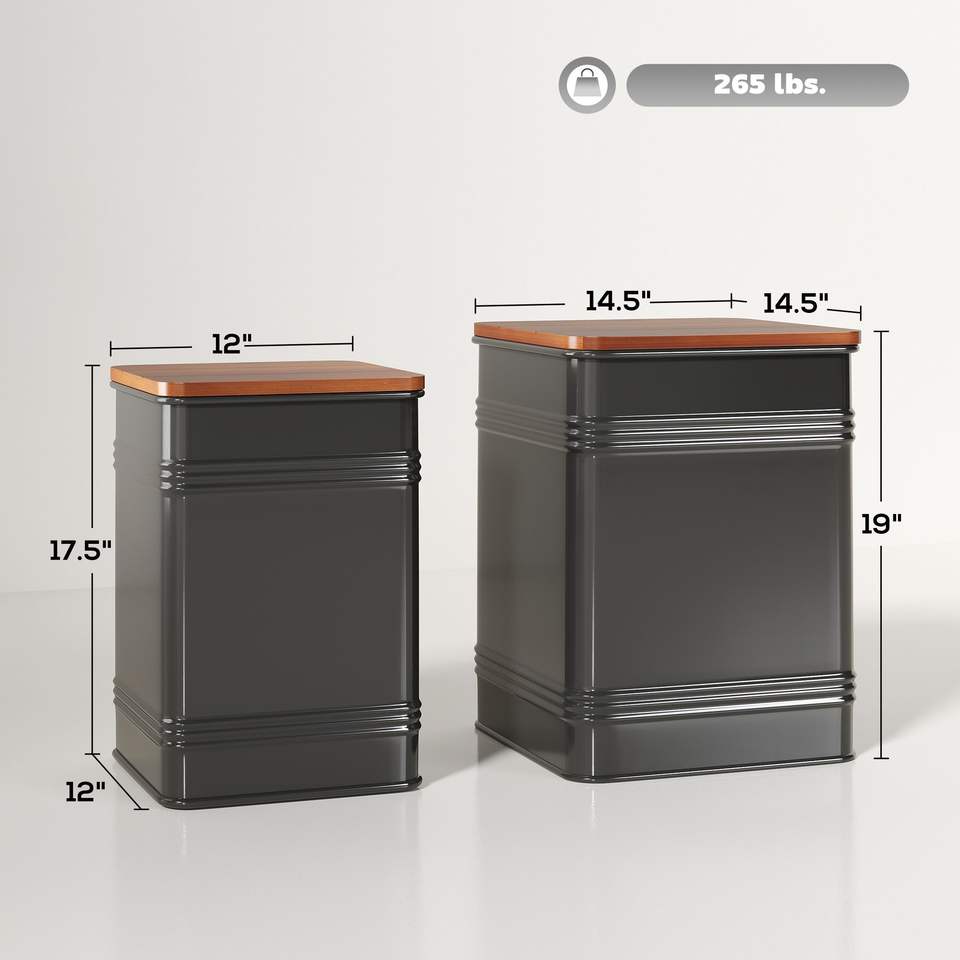 Set of 2 Industrial Nesting Ottomans with Removable Lid Black Metal Frame Ottoman with Storage for Living Room