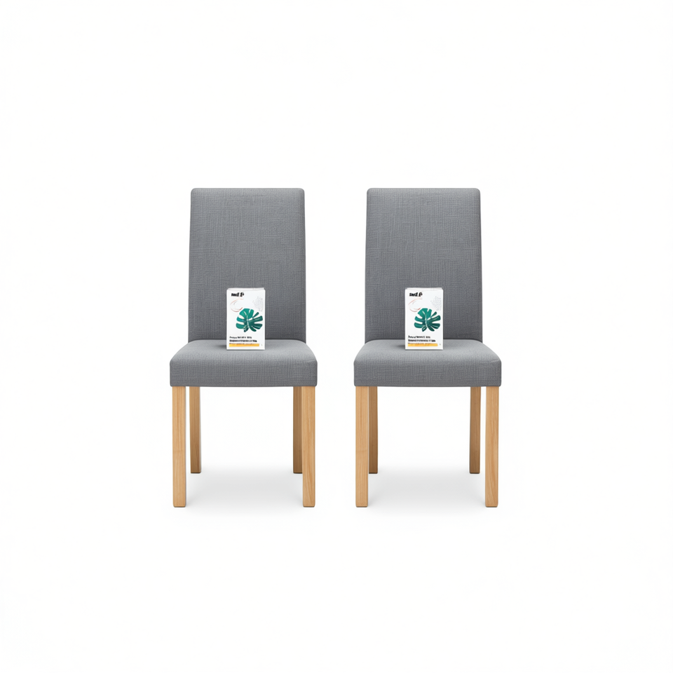 Set di 2 sedie da pranzo in tessuto grigio chiaro con gambe in legno di gomma, stile classico, mobili moderni imbottiti per la casa