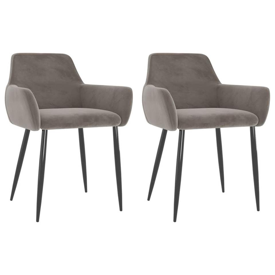 Sedie da pranzo imbottite in velluto grigio chiaro con gambe in metallo dal design moderno per set di mobili da sala da pranzo, set di 2
