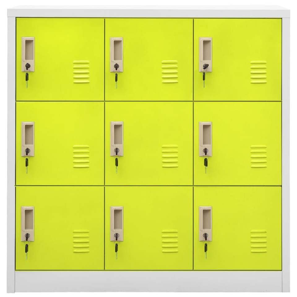 Set di 2 Armadietti di Stoccaggio Medi in Acciaio Grigio Chiaro e Verde, Serie Locker