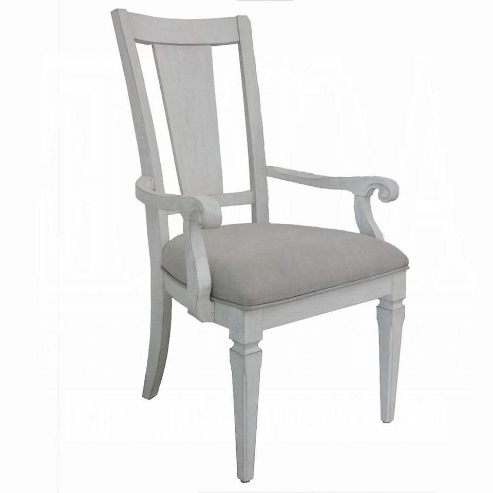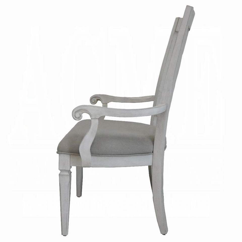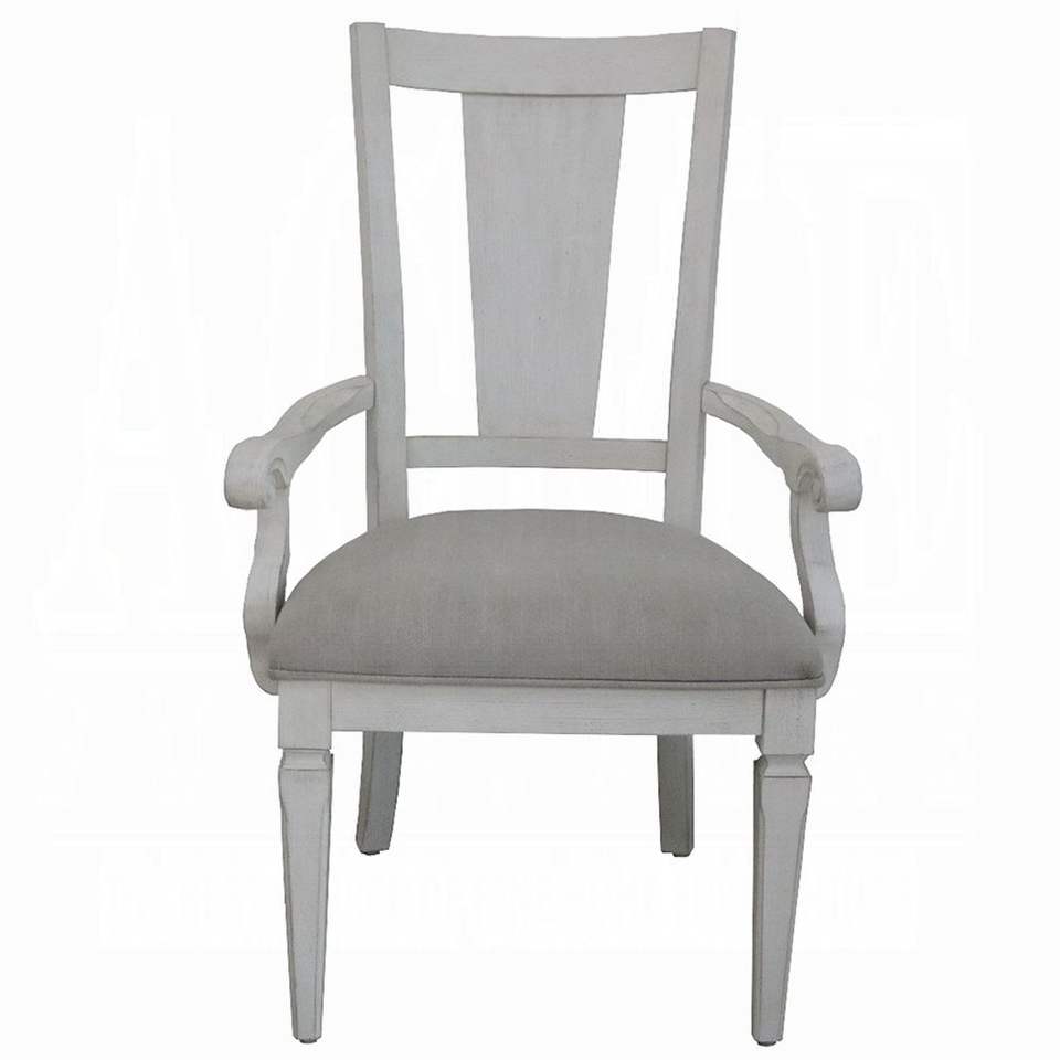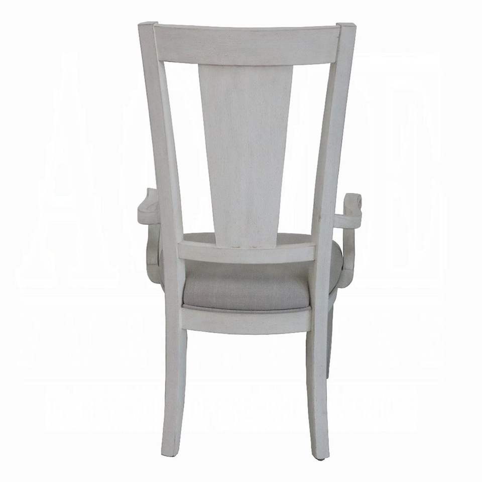 Set di 2 Sedie Imbottite con Braccioli in Grigio Chiaro e Bianco Anticato per Sala da Pranzo