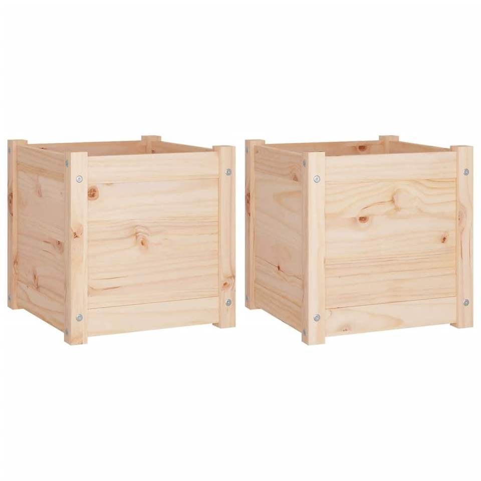 Set di 2 Fioriere/Vasi Medi in Legno Naturale Massello di Pino