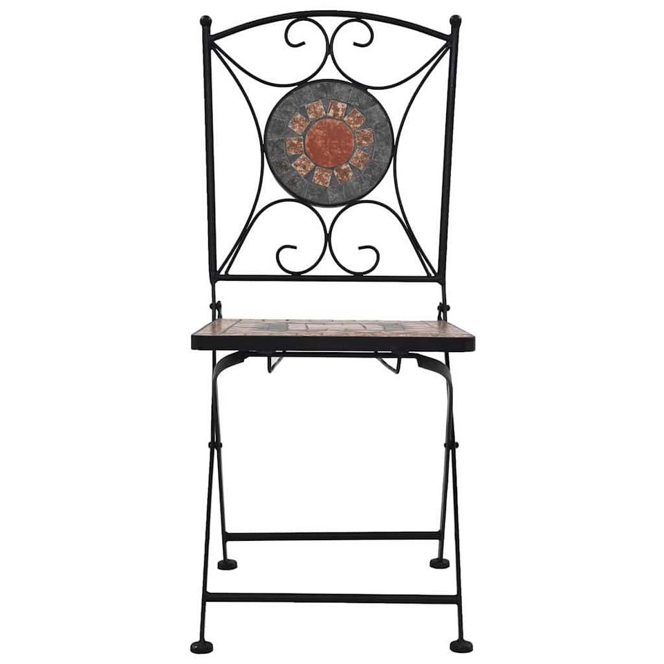 Set of 2 Orange and Grey Powder-Coated Iron Garden Chairs with Ceramic Durable and Stylish Seat