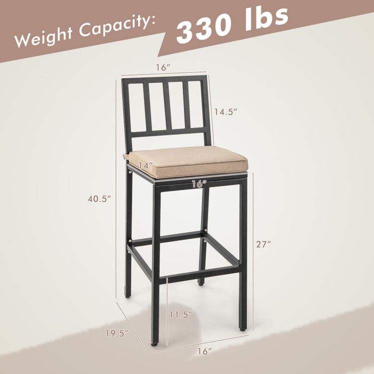 Set di 2 sgabelli da Bar con cuscino staccabile e poggiapiedi per l'intrattenimento all'aperto
