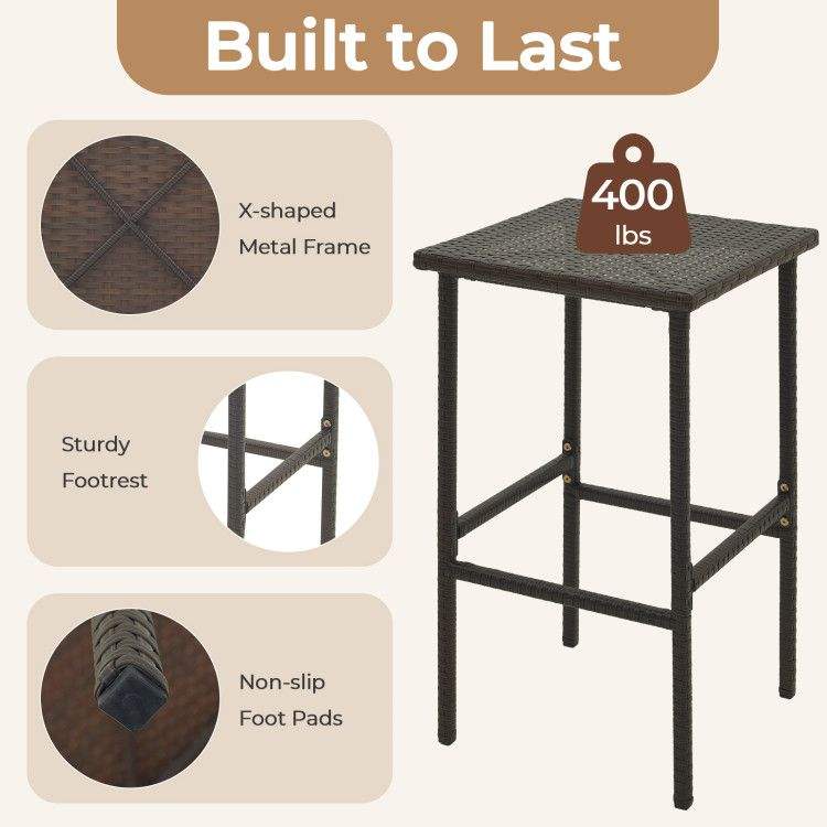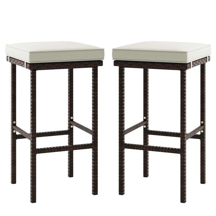 Set di 2 sgabelli da bar in vimini per patio con comodi cuscini e poggiapiedi per l'intrattenimento all'aperto