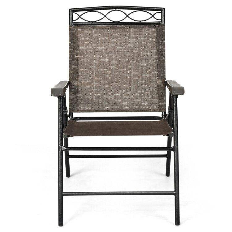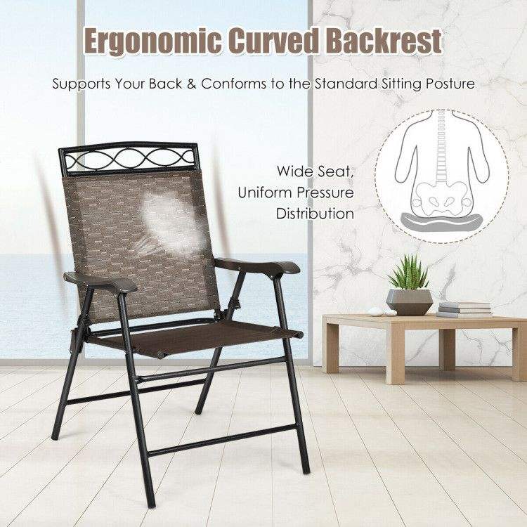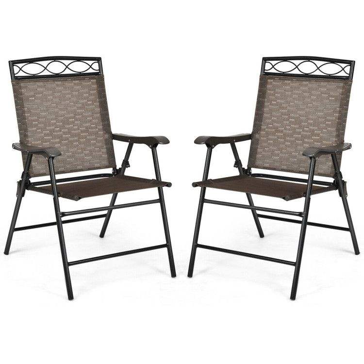 Set di 2 Sedie da Pranzo Portatili da Esterno con Braccioli e Design Pieghevole a Rete per Uso Esterno
