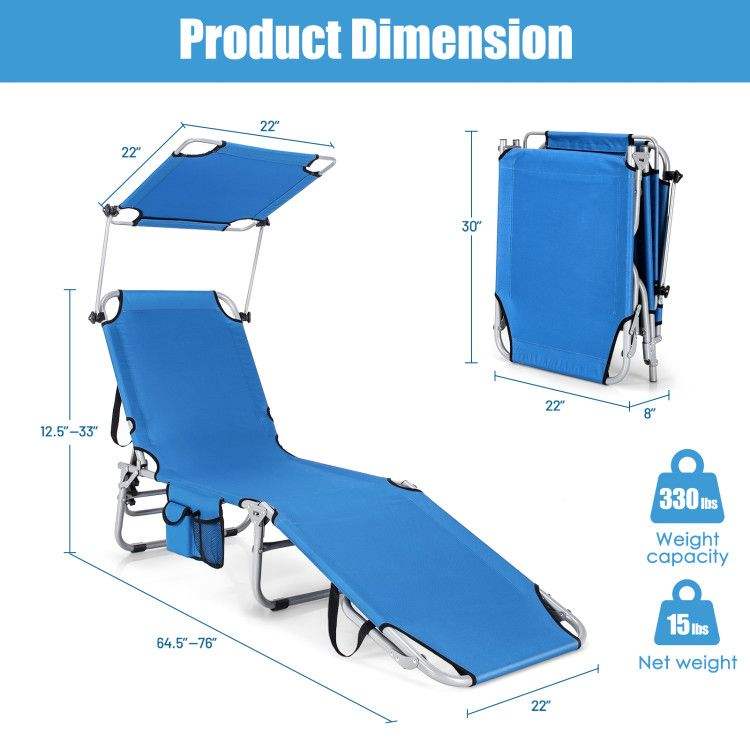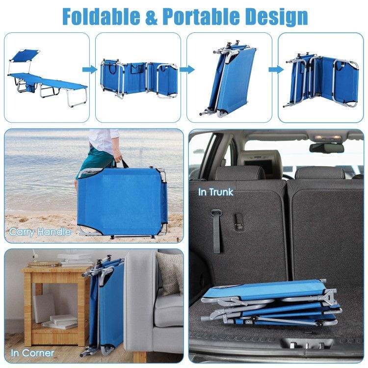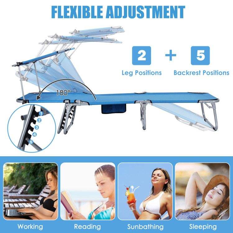 Set di 2 Sedie da Spiaggia Reclinabili Portatili con 5 Posizioni Regolabili