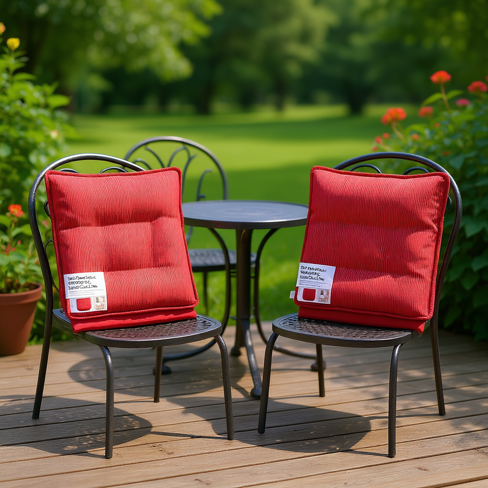 Set di 2 cuscini per sedia con schienale basso in tessuto Oxford rosso, per uso esterno, resistenti all'acqua, rimovibili e lavabili
