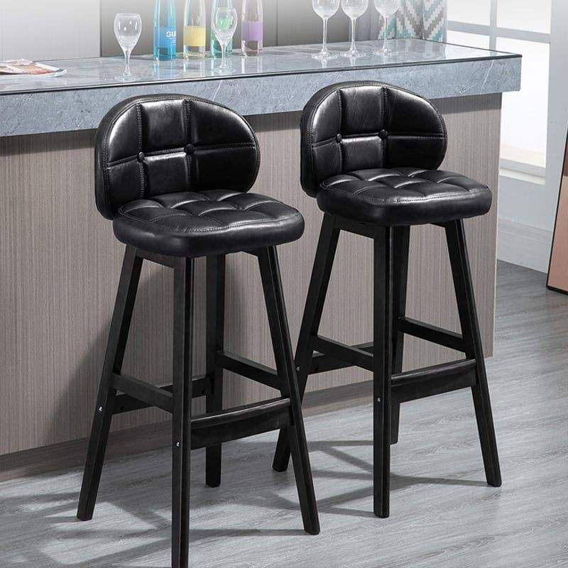 Set di 2 sgabelli da Bar rustici in pelle sintetica nera con sedile imbottito per la tua casa o spazio commerciale
