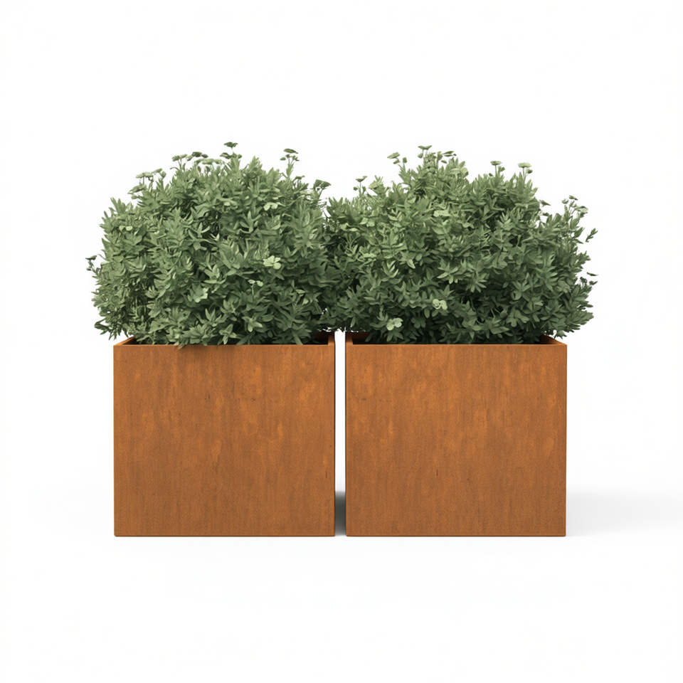Inserti decorativi quadrati in acciaio Corten per vasi da fiori, giardino, marrone rustico, misura media