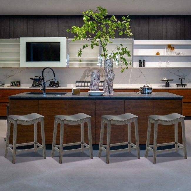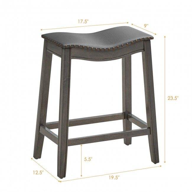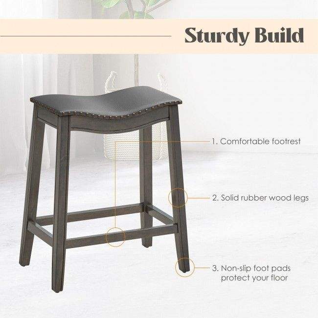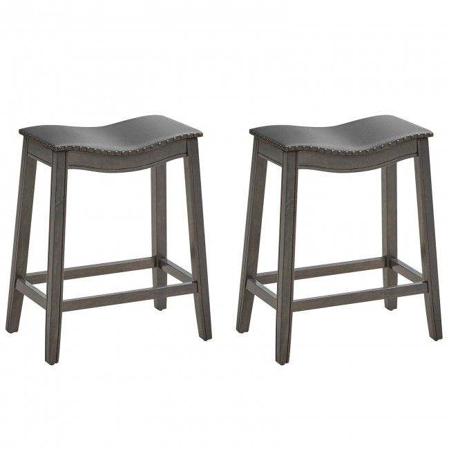 Set di 2 Sgabelli da Bar con Gambe in Legno di Gomma Resistente