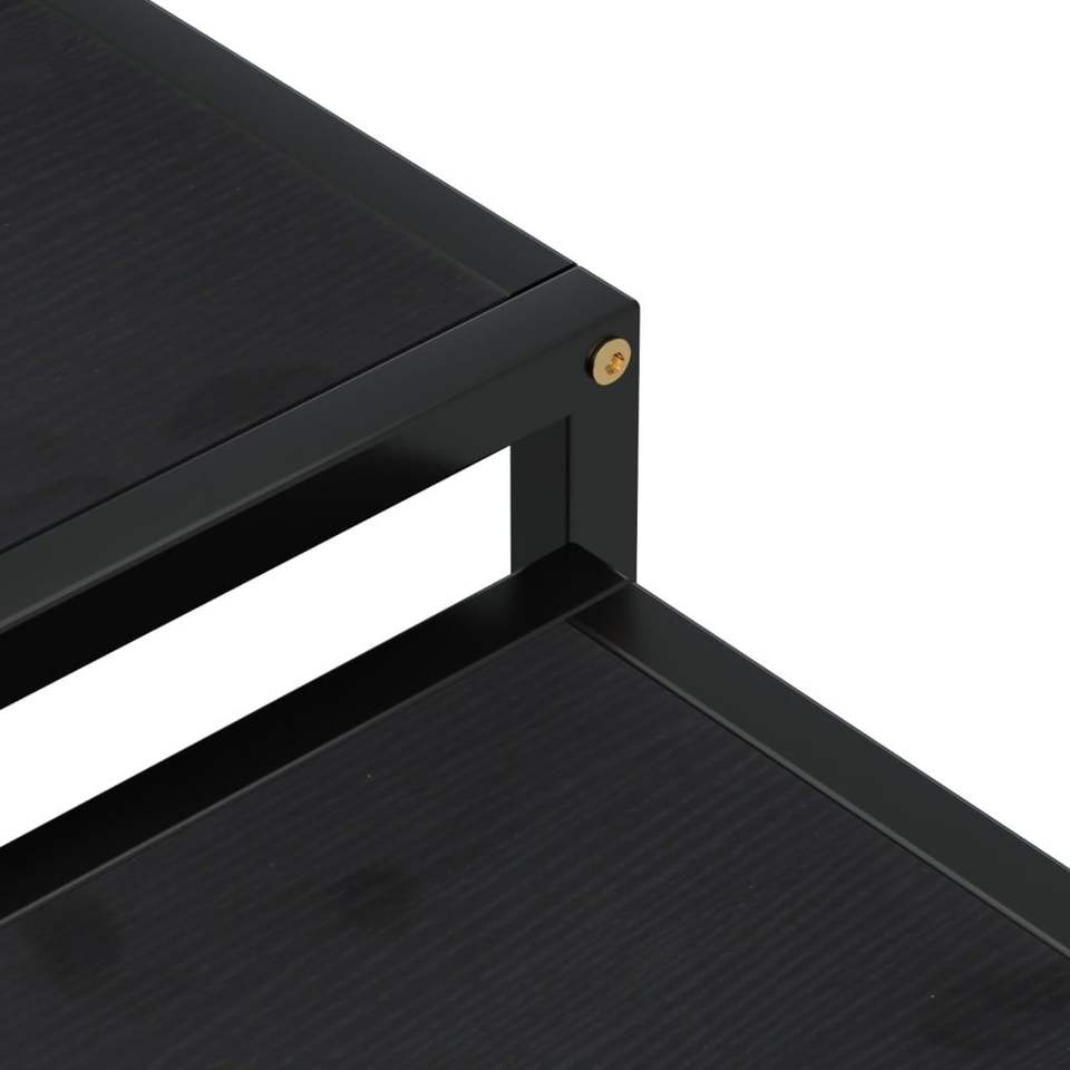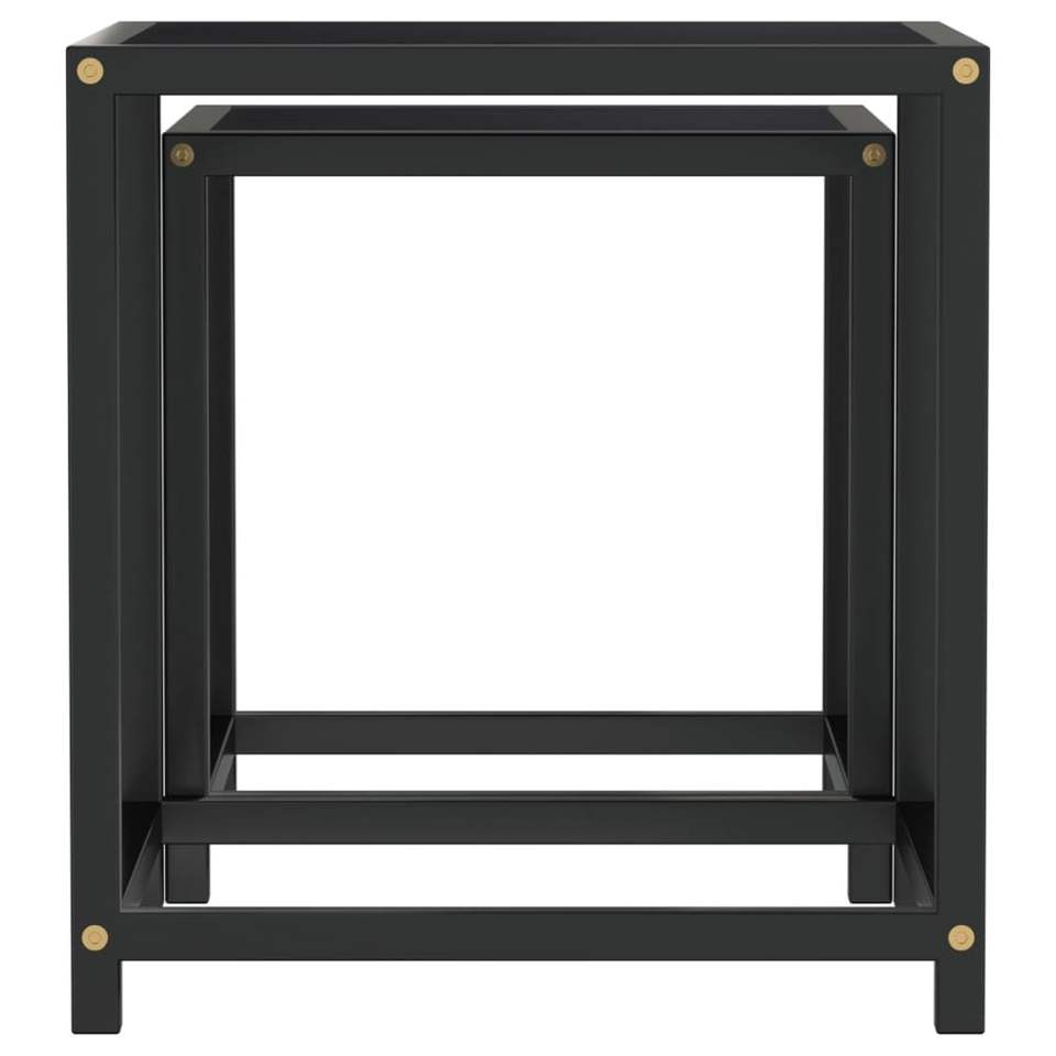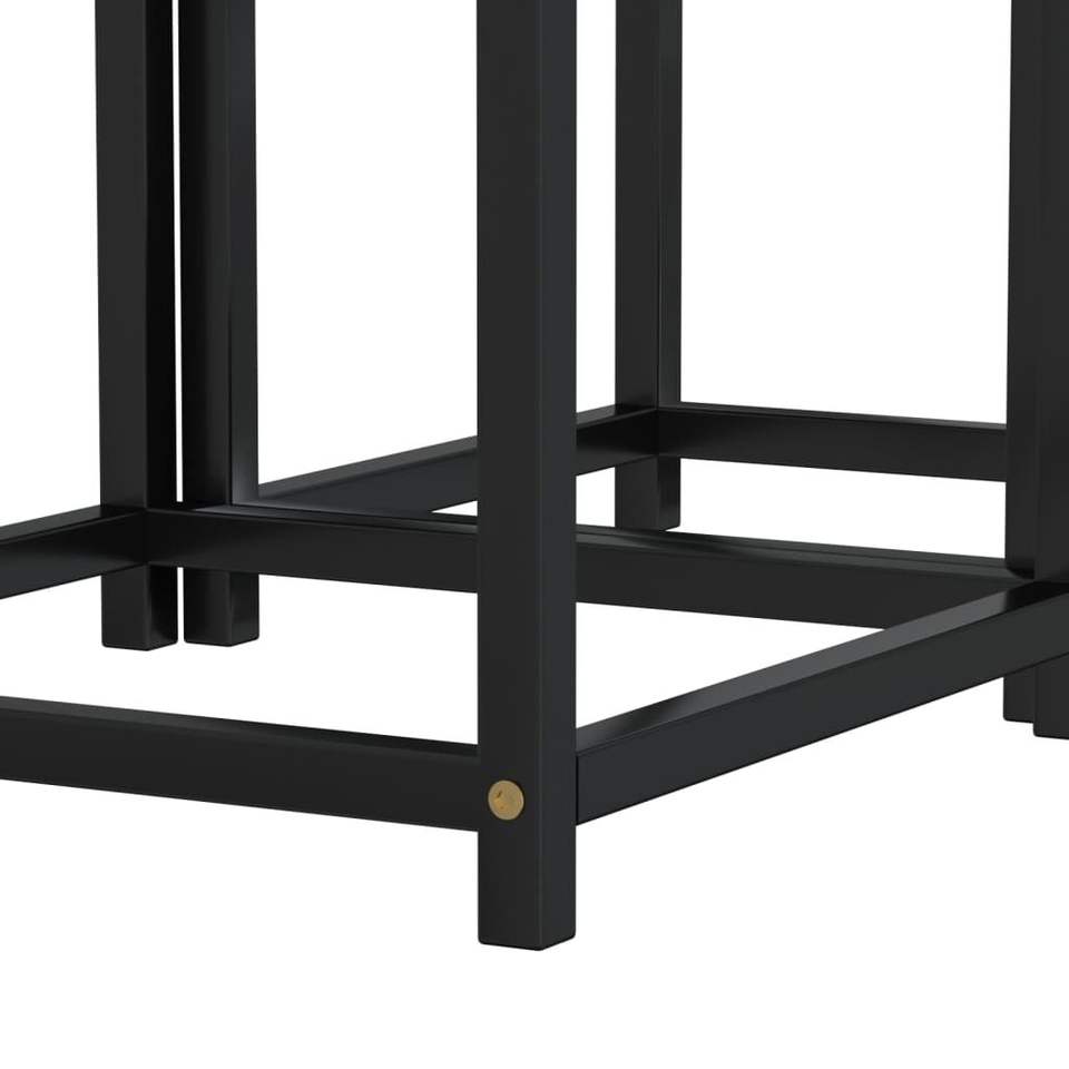 Set di 2 Eleganti Tavolini Neri in MDF e Sgabelli/Pouf