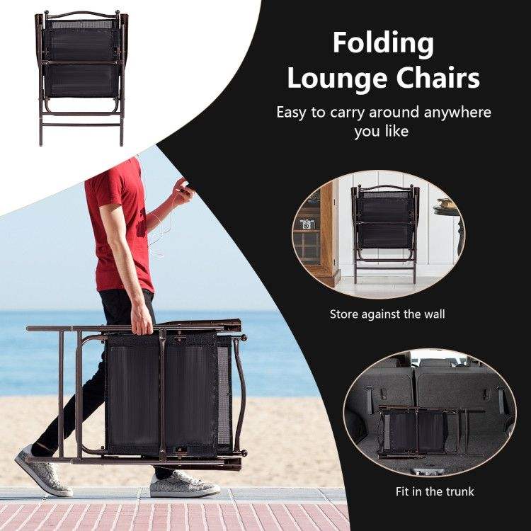 Set di 2 Sedie Pieghevoli da Patio con Schienale Reclinabile per Campeggio e Uso in Terrazza