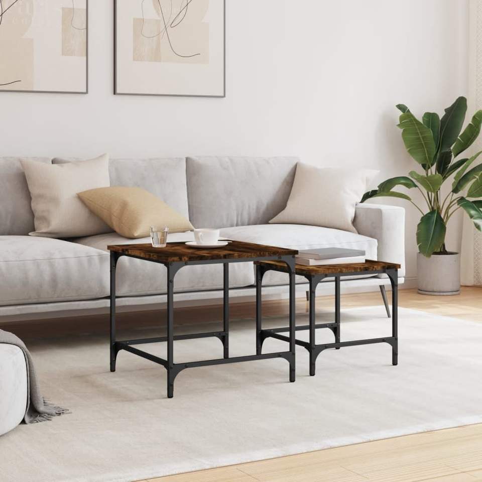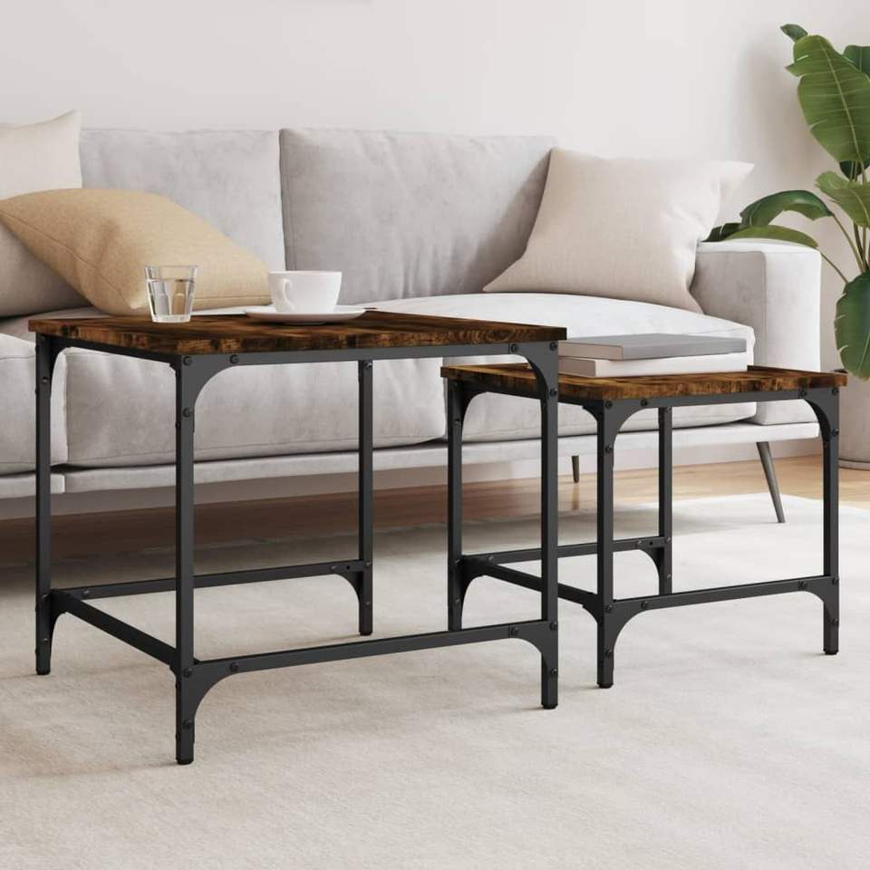 Set of 2 Small Smoked Oak Engineered Wood Nesting Coffee Tables