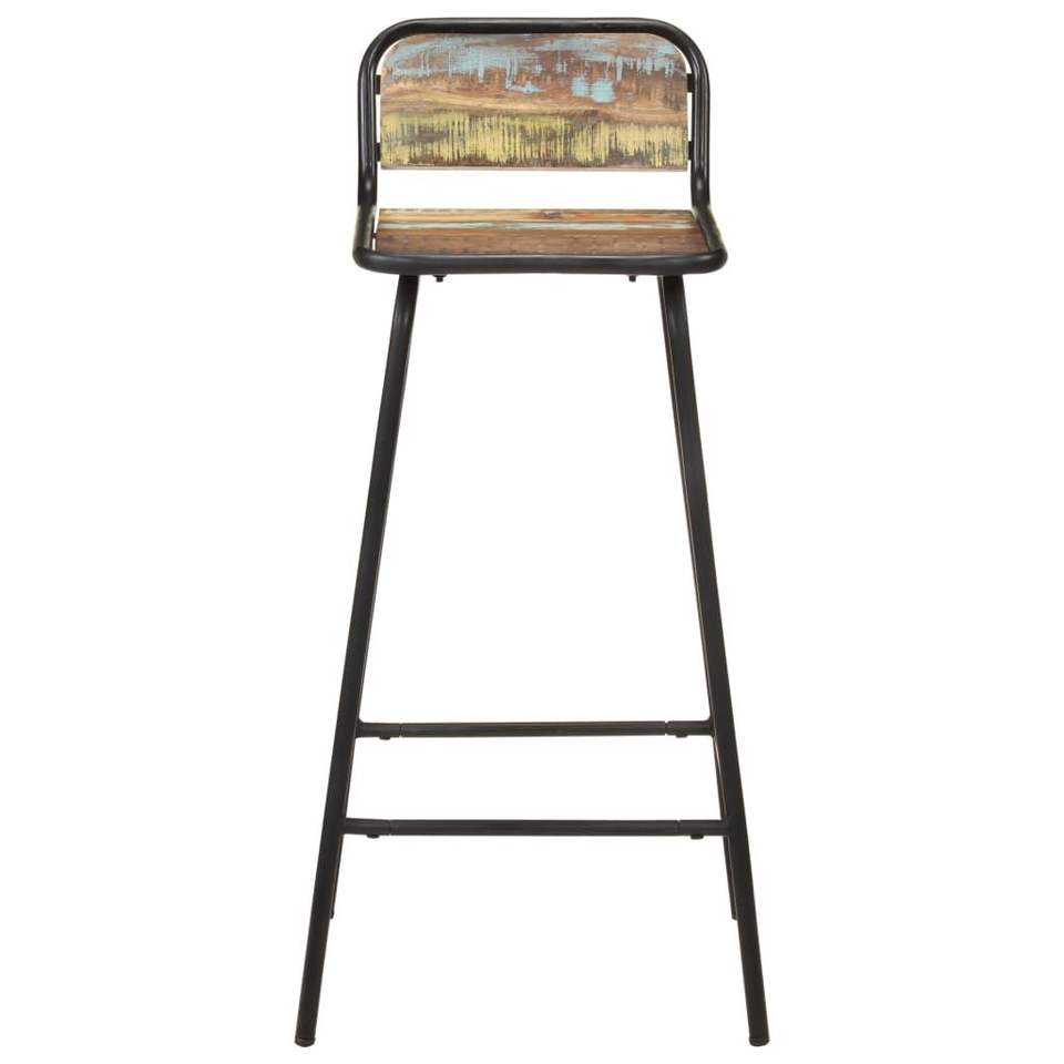 Set of 2 Solid Reclaimed Wood Bar Stools Mixed Color Finish Durable and Stylish