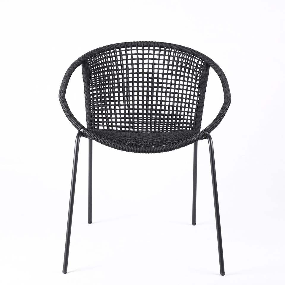 Set di 2 Sedie da Pranzo Impilabili per Interni ed Esterni in Acciaio con Corda Nera