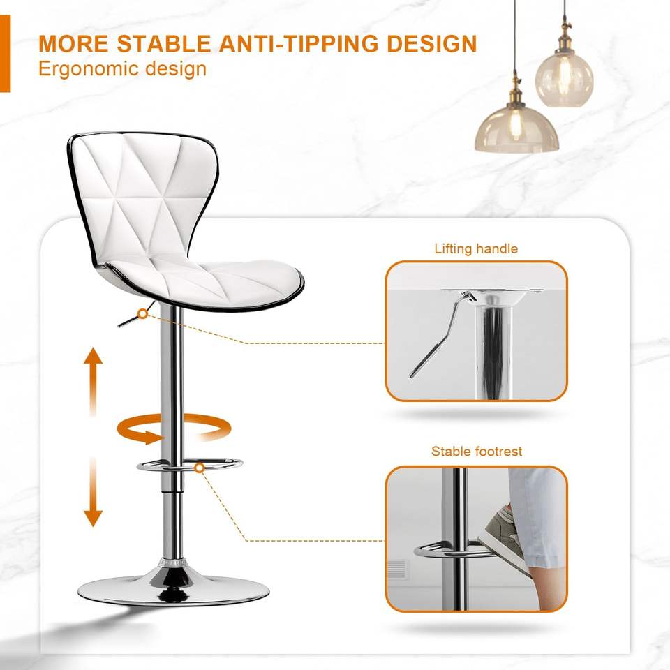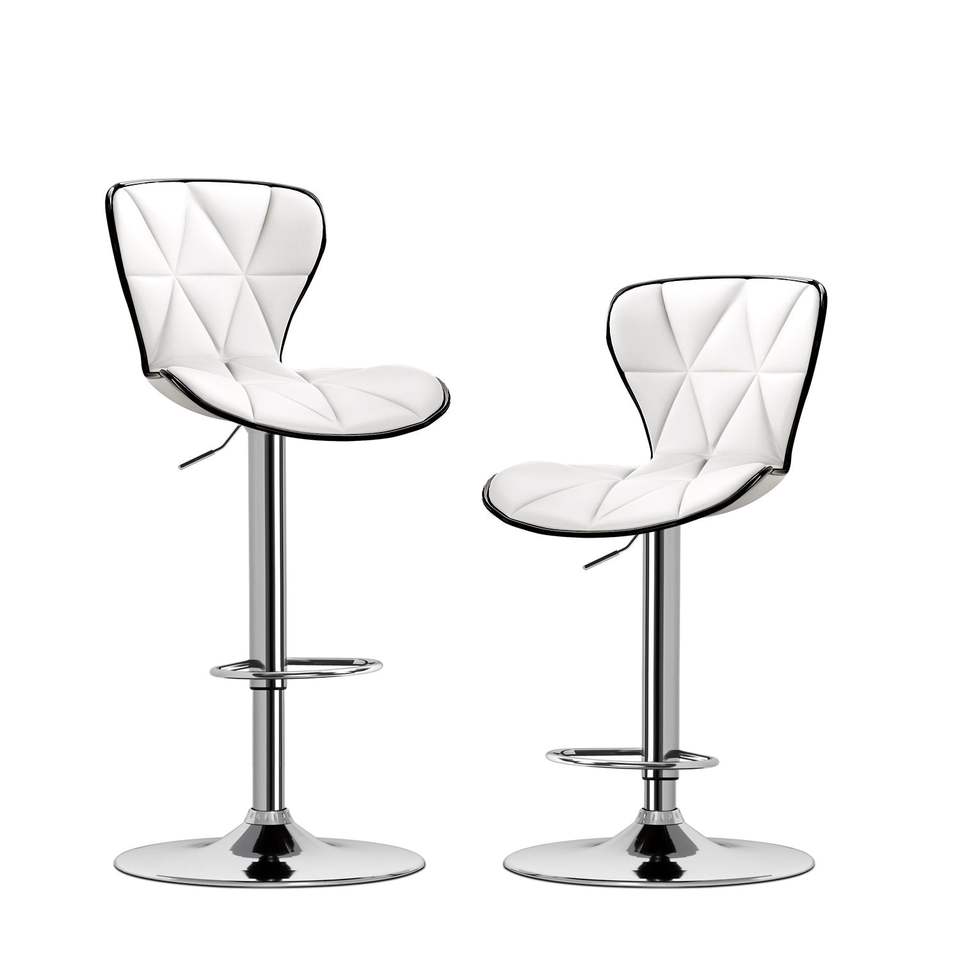 Set di 2 Sgabelli da Bar Girevoli e Regolabili in Altezza con Schienale e Rivestimento in Pelle PU Bianca