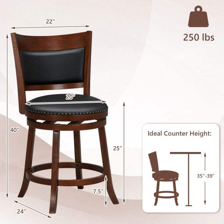 Set di 2 sgabelli da bar girevoli con seduta imbottita più ampia da 20 pollici