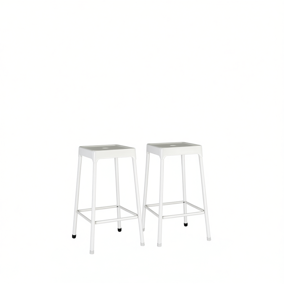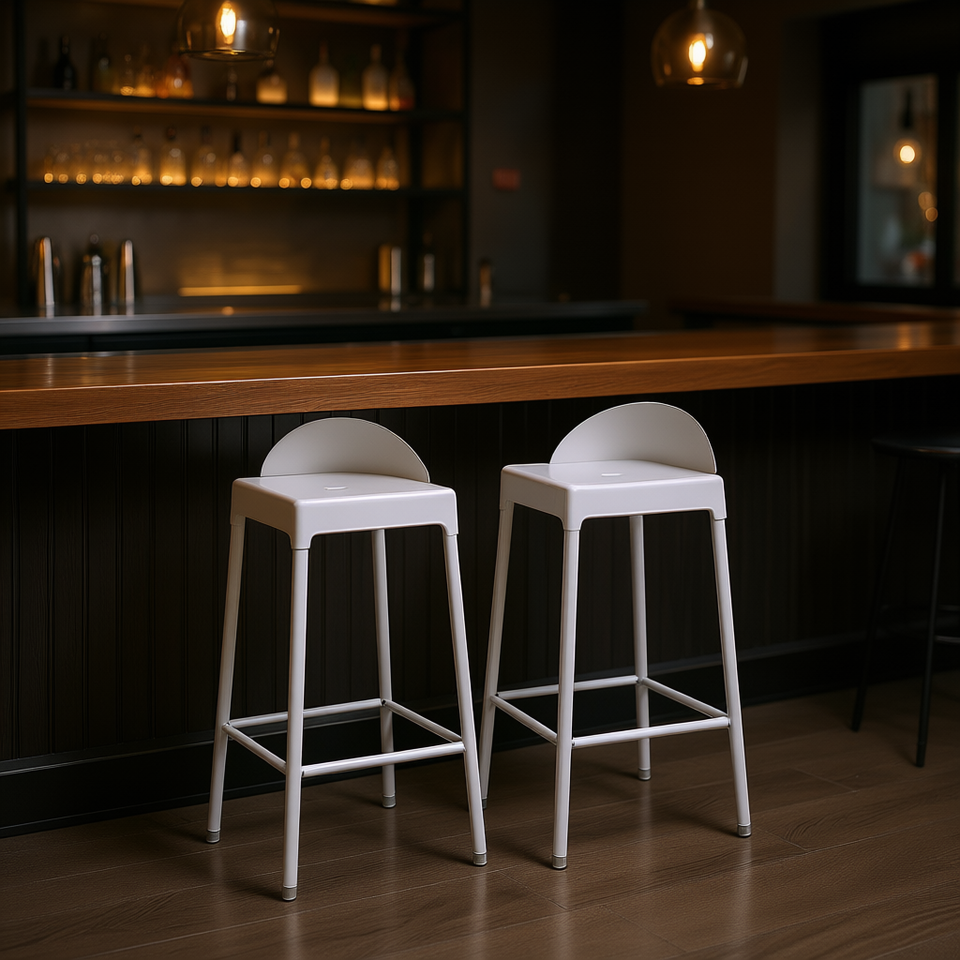 Sgabelli da Bar in Metallo Bianco, Design Minimalista Moderno con Rivestimento in Polvere, Arredamento Commerciale