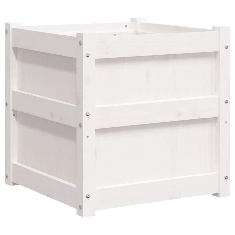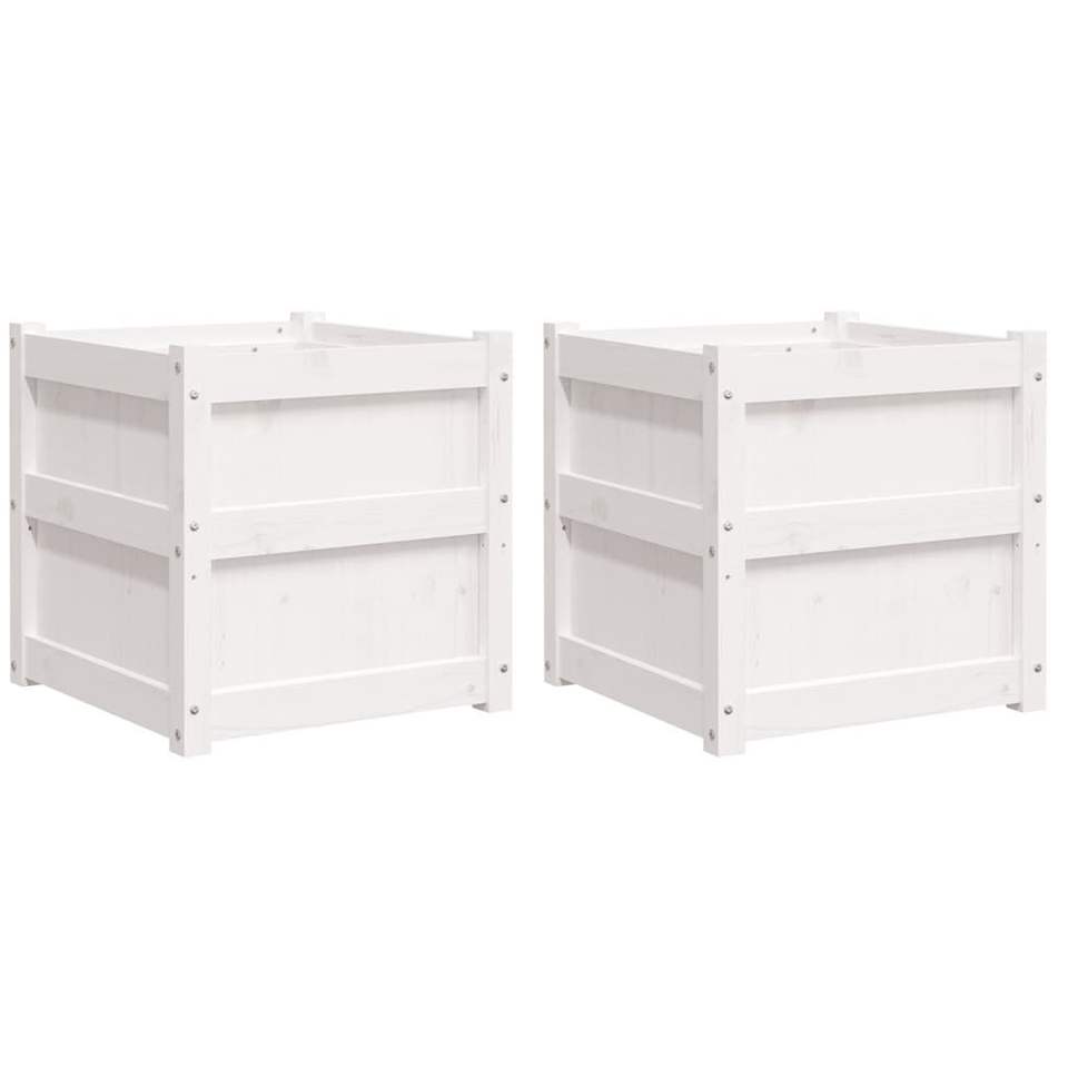 Set of 2 White Solid Pine Wood Garden Decorative Inlays Flower Pots & Planters