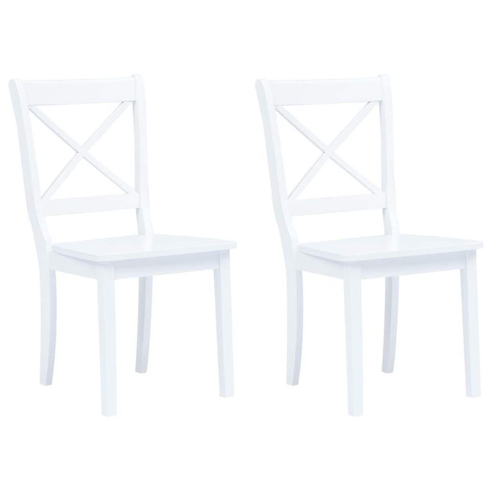 Set of 2 White Solid Rubber Wood Dining Chairs Standard Durable Design