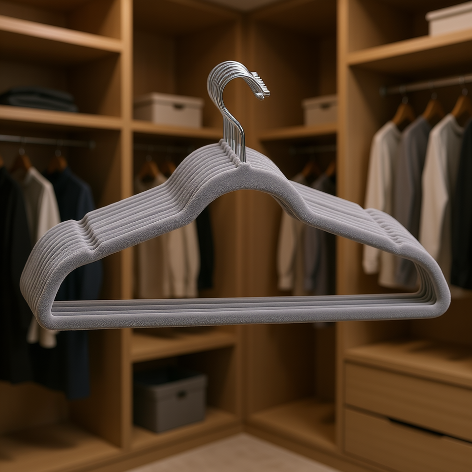 Appendiabiti in Velluto Grigio con Gancio in Lega di Zinco, Misura Standard, per Organizzazione Guardaroba e Conservazione Vestiti