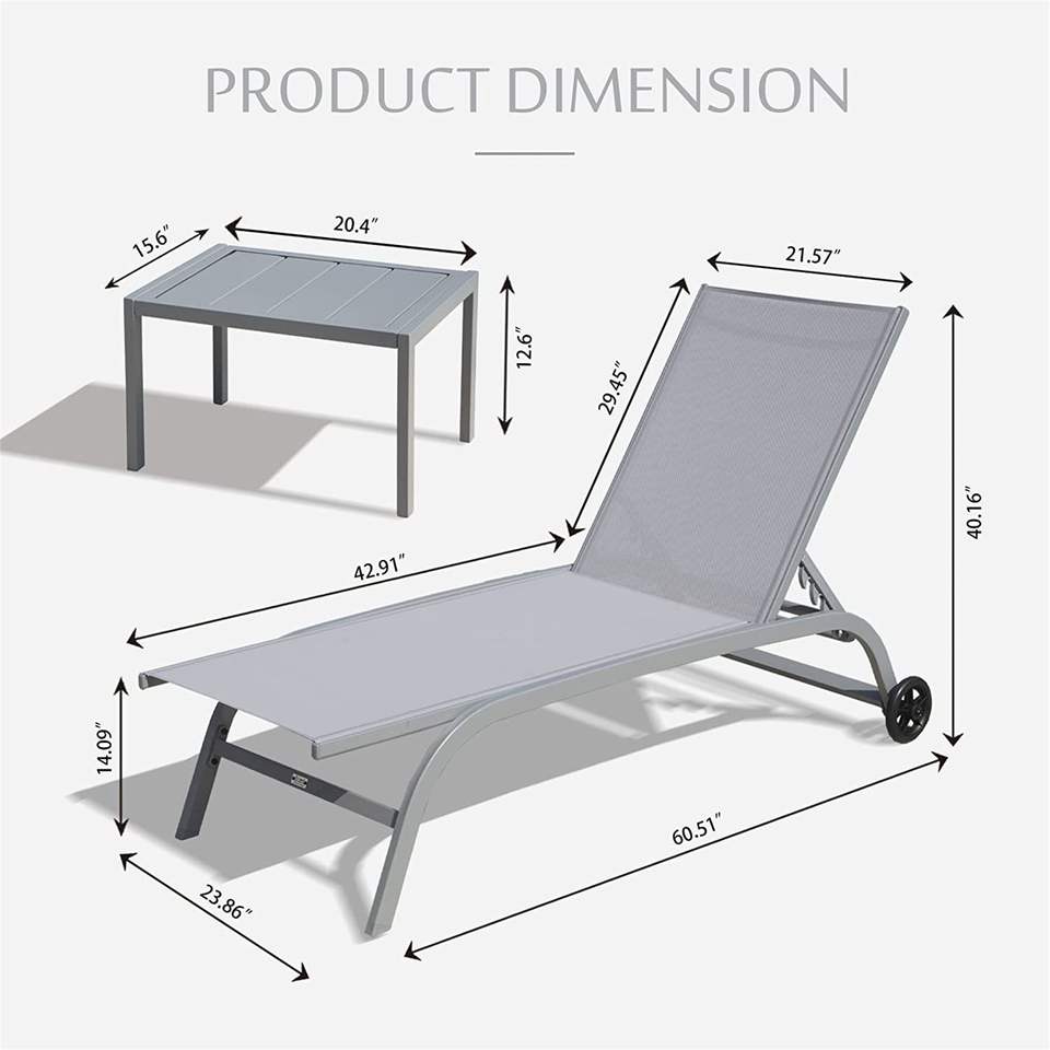 Set di 3 Sdraio Regolabili da Esterno con Ruote, Ideali per Piscina e Relax all'Aperto