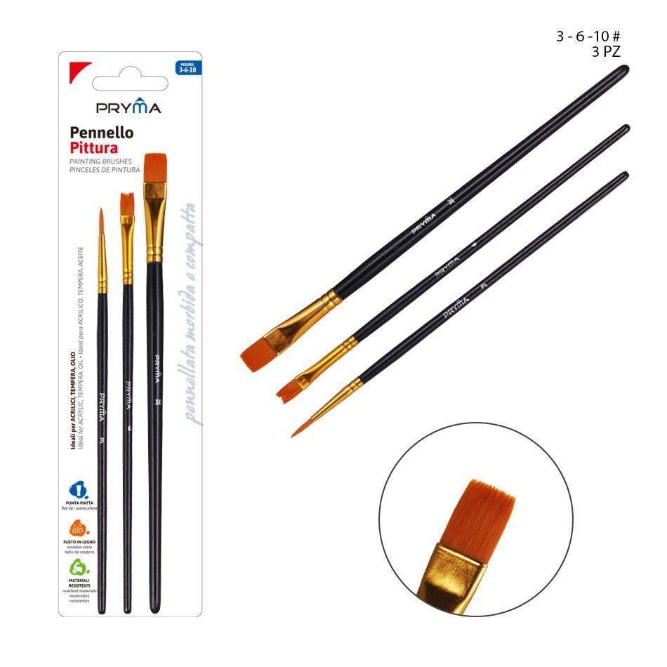 Set of 3 Artist Watercolor Brushes No. 3-6-10 White/Black Wood Handles with Flat Weasel Hair/Nylon/Wool 8034139268378 Product