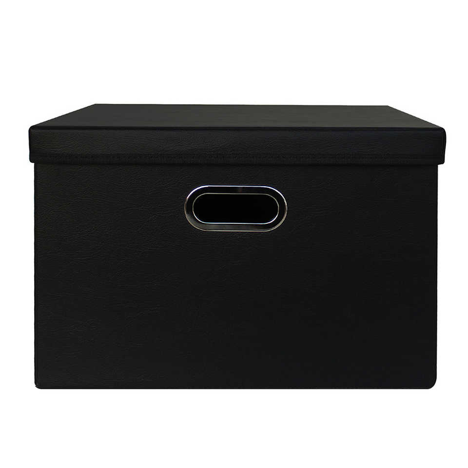 Set di 3 scatole portaoggetti in ecopelle nera elegante soluzione organizzativa in ecopelle