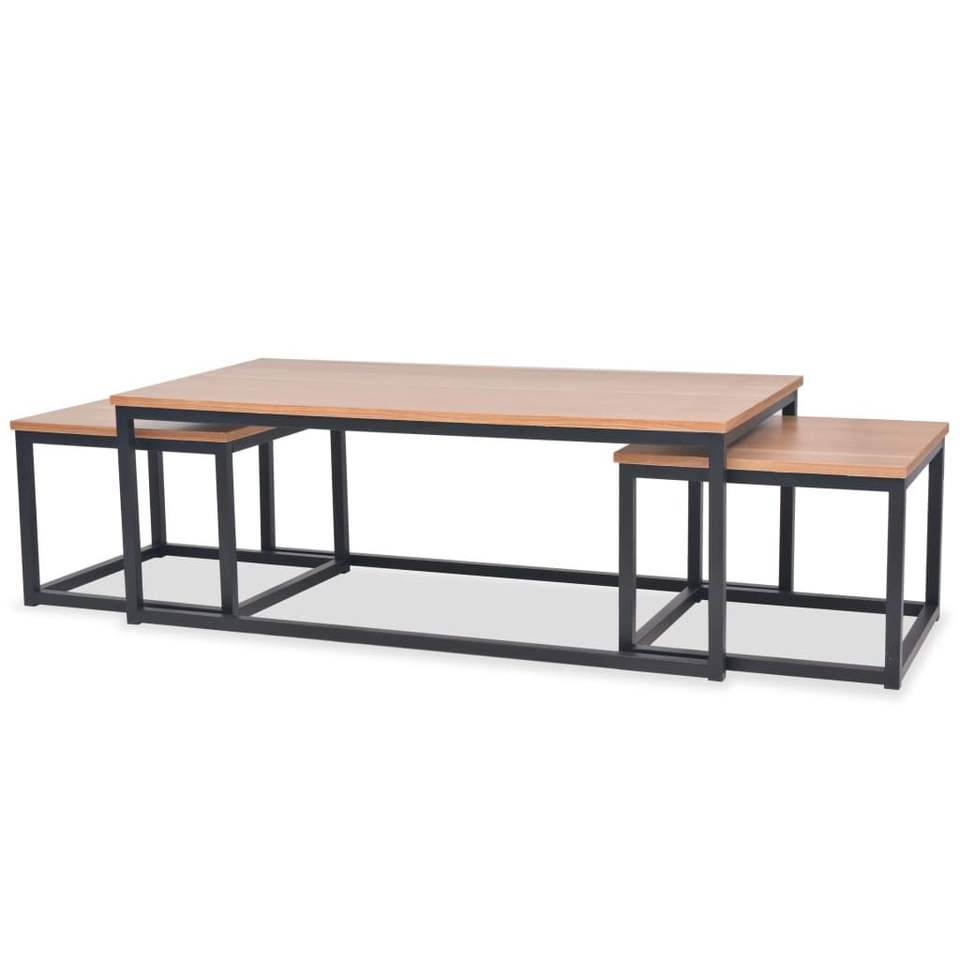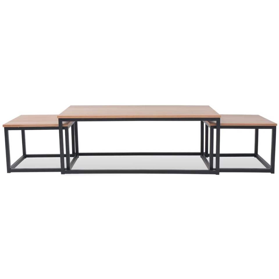 Set of 3 Brown and Black Side Tables for Coffee Table Use