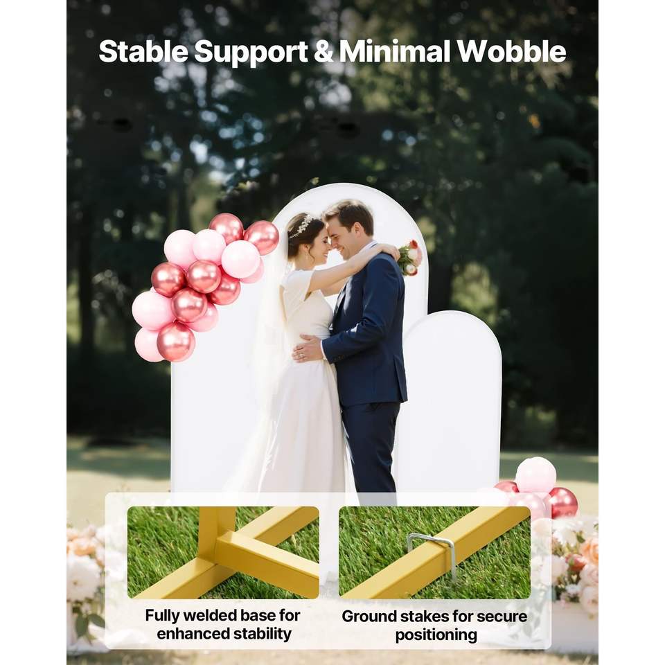 Set di 3 Supporti ad Arco in Metallo Dorato 6/5/4 ft, Struttura Stabile e Facile Montaggio per Matrimoni