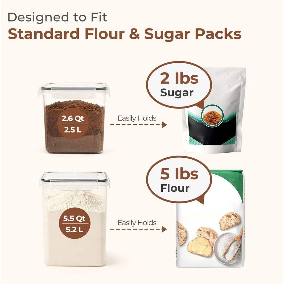 Set di 3 Grandi Coperchi Ermetici in Plastica per Contenitori di Farina e Zucchero da 5.2L/5.5Qt e 2.5L/2.6Qt, per Conservazione Alimenti