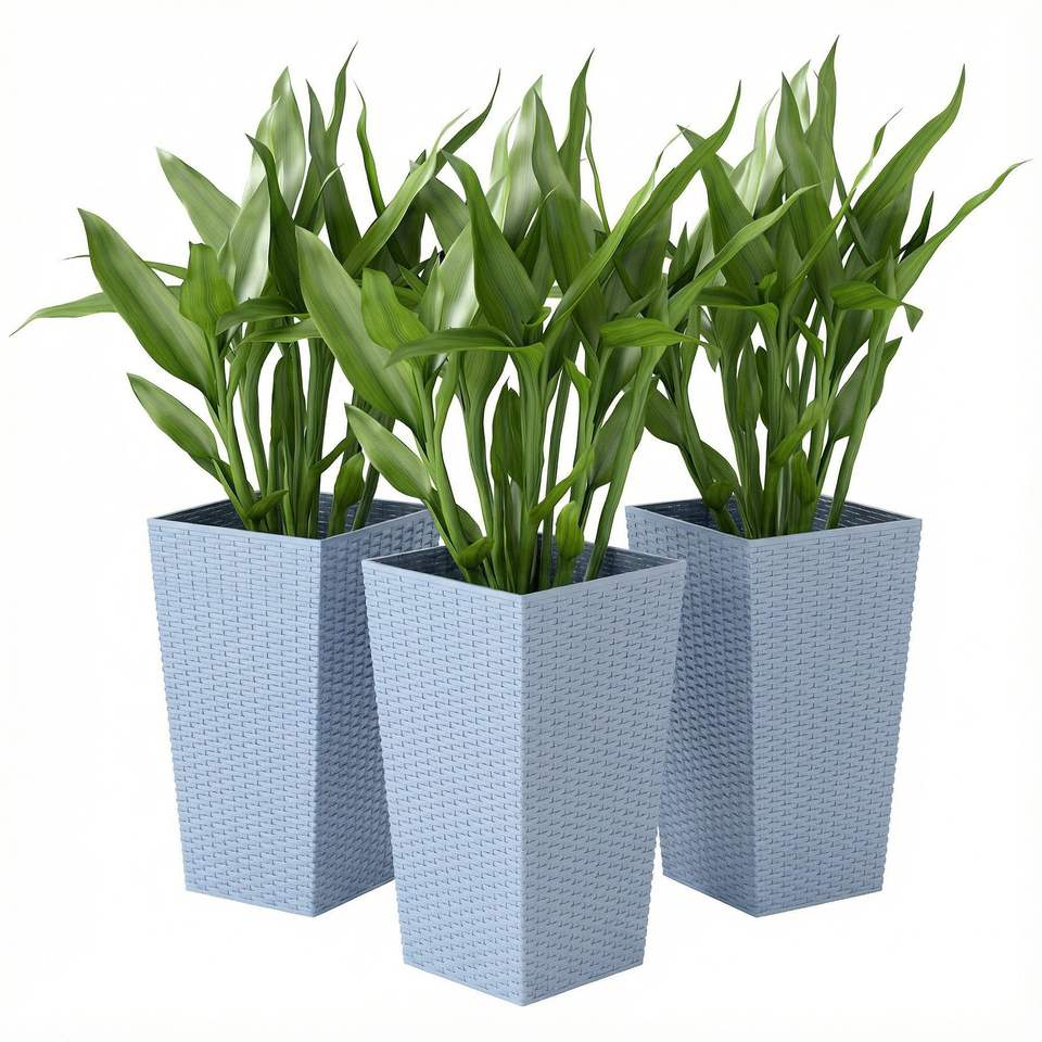 Set di 3 Fioriere Coniche Grigio Chiaro Alte 60 cm per Esterni con Fori di Drenaggio, Vasi per Fiori in Rattan, Supporti per Piante