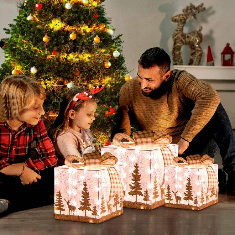 Set di 3 Scatole Regalo Natalizie Illuminate con 100 Luci Bianco Caldo