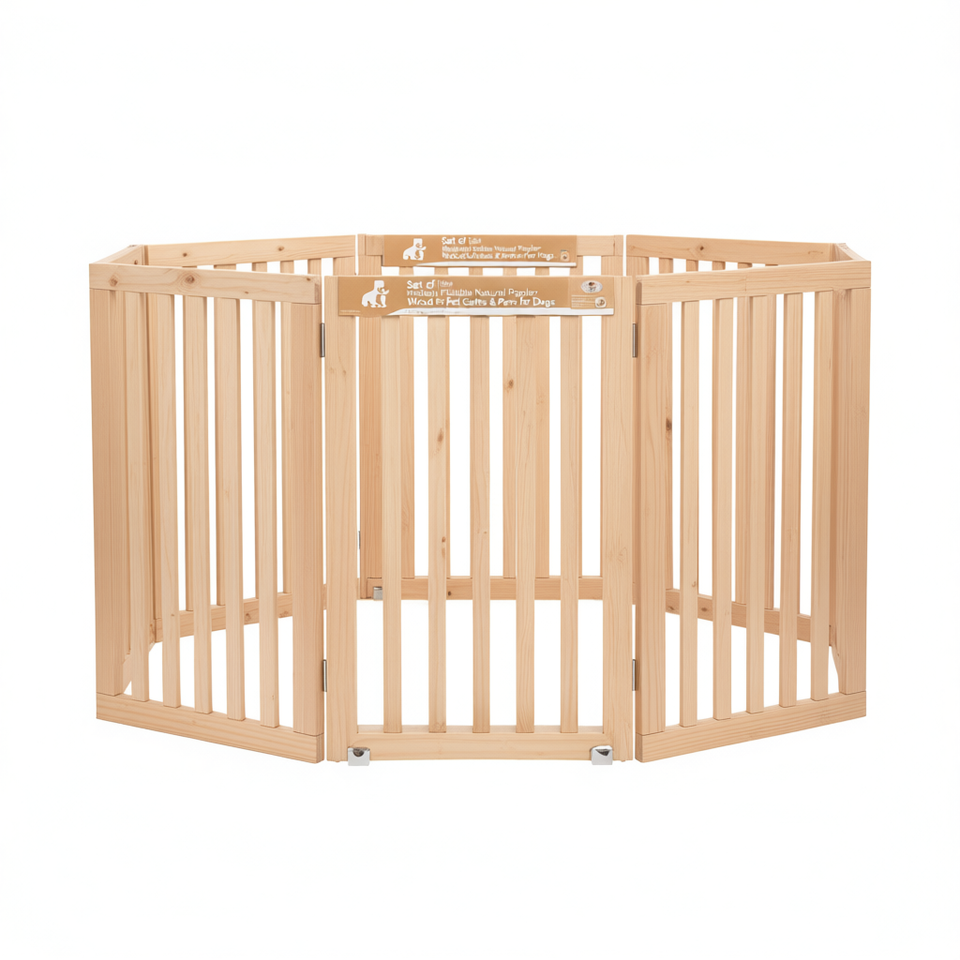 Recinti e Box per Cani Pieghevoli Medi in Legno Naturale di Pioppo, Esagonali per Interni con Chiusura a Bottone a Scatto