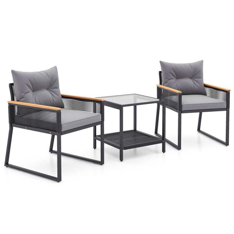 Set di 3 mobili da giardino con tavolino a 2 livelli e morbidi cuscini di seduta