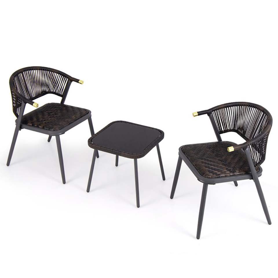 Set di 3 Mobili da Giardino in Rattan con Piano in Vetro Temperato per Cortile o Bordo Piscina