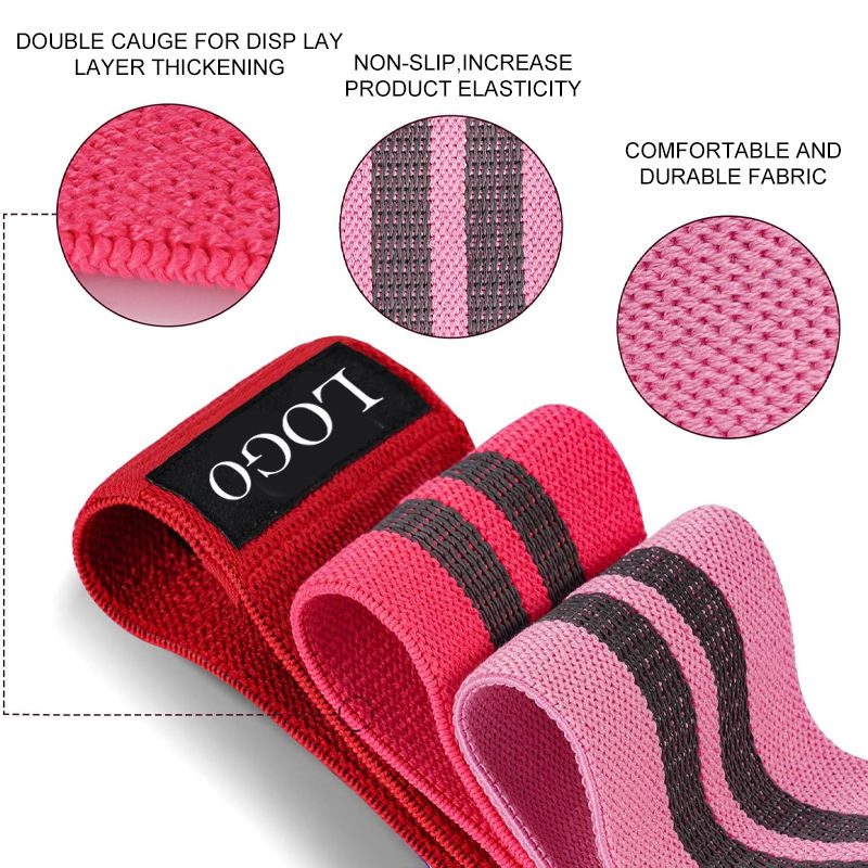 Set of 3 Spandex Hip Resistance Loop Bands with Customized Logo Polyester Fabric Booty Bands for Exercise