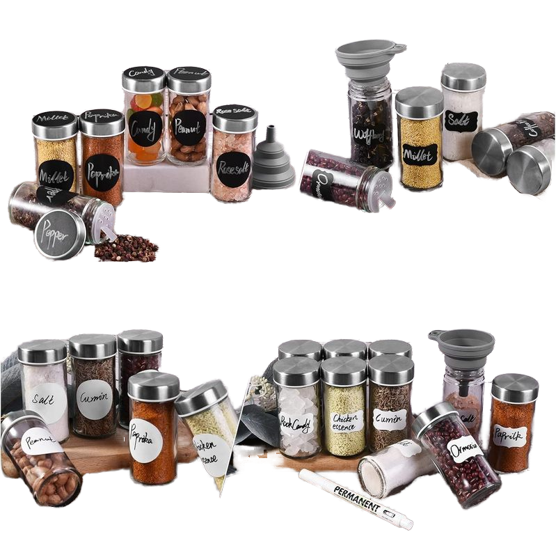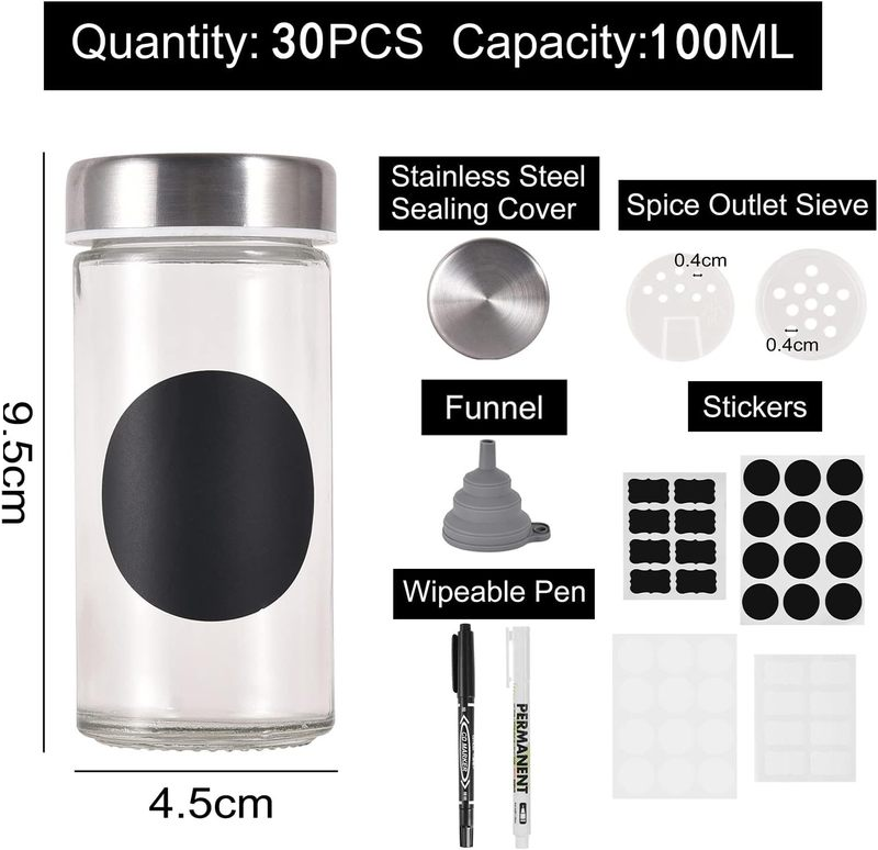 Set of 30pieces Round Glass Herb Spice Container With Stainless Steel Cover and Spice Labels
