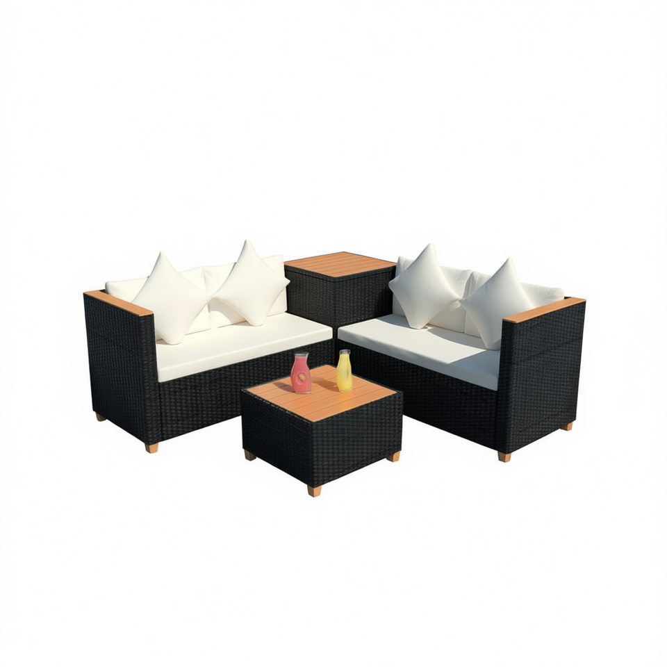Set di Mobili da Patio in Rattan Moderno Nero per 4 Persone, Design Contemporaneo con Cuscini e Telaio in Acciaio