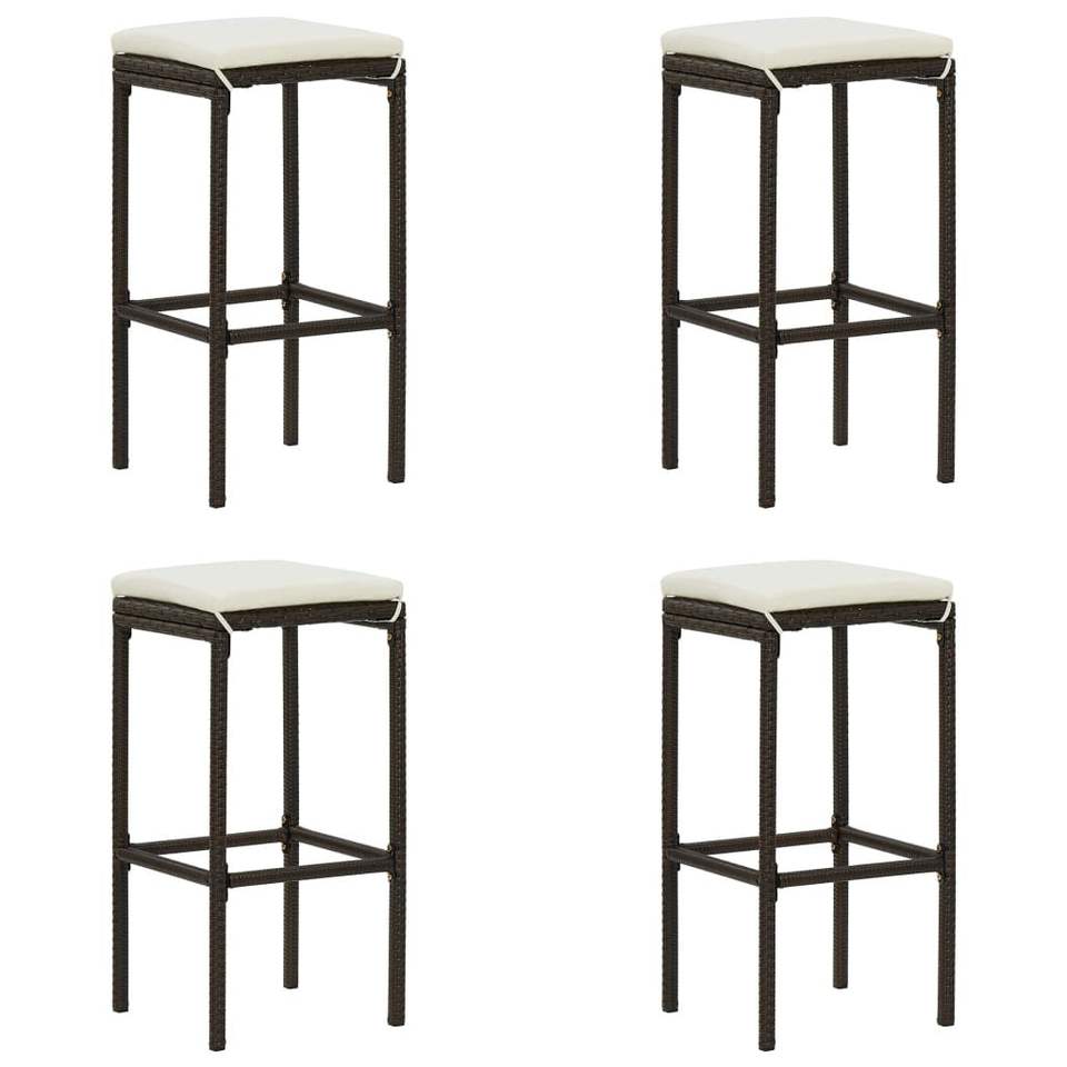 Set di 4 sgabelli da bar marroni con cuscini bianco crema