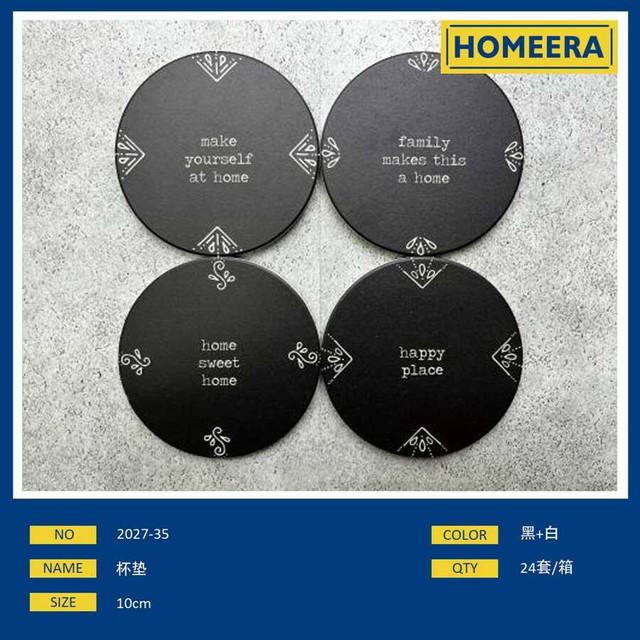Set of 4 Ceramic Coasters 10cm Black and White Design PET Box Home Use Promotional Item
