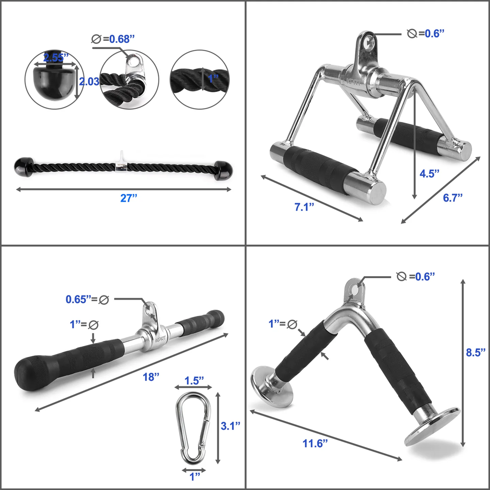 Set di 4 Barre Rotanti Cromate per Tricipiti e Barra a V, Attrezzatura per Palestra Domestica, Accessori in Acciaio e Gomma con Maniglie a D e V