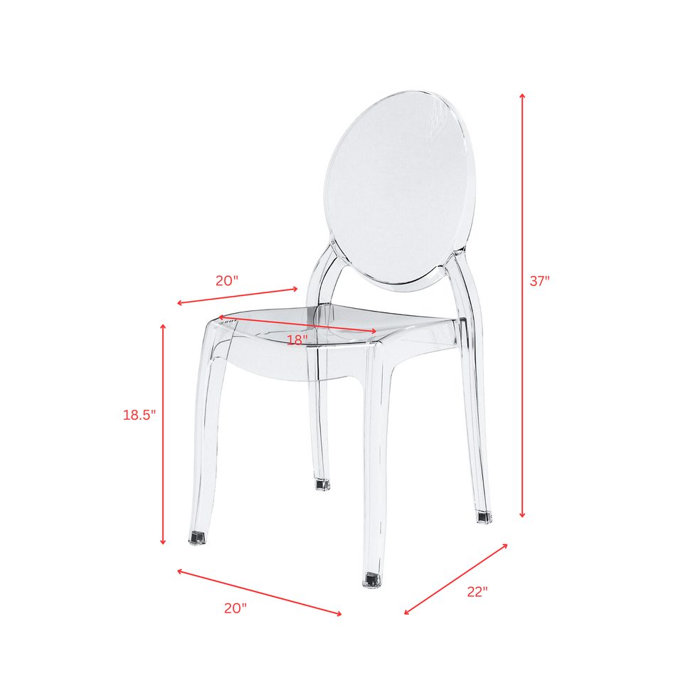Set of 4 Clear Large Ghost Chairs Modern Acrylic Stacking Kitchen and Dining Room Wedding Decorations