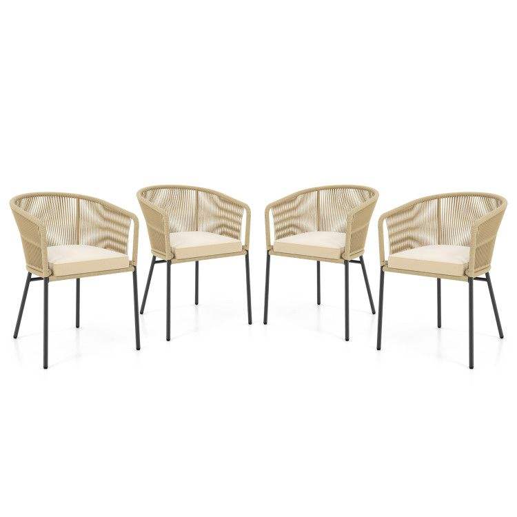 Set di 4 Sedie da Patio con Schienale Curvo e Cuscino per Arredamento da Esterno
