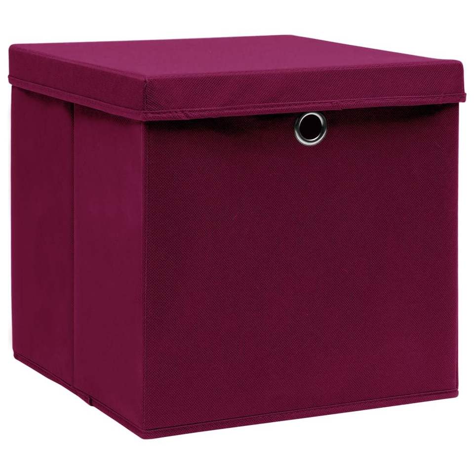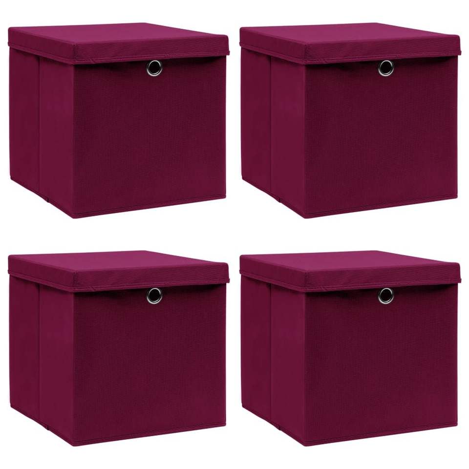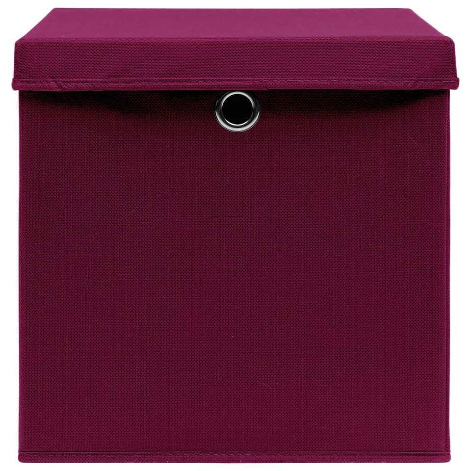 Set di 4 Scatole Portaoggetti in Tessuto Non Tessuto Rosso Scuro 100% Poliestere, Eleganti Cesti e Contenitori in Tessuto