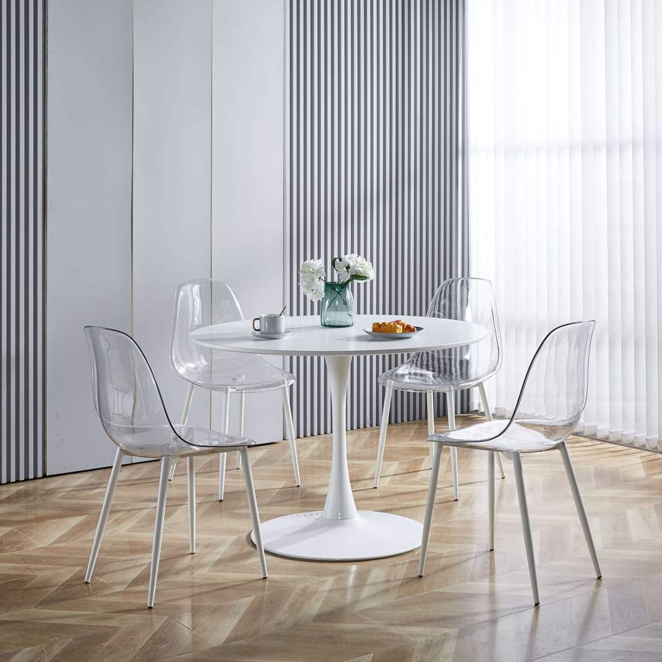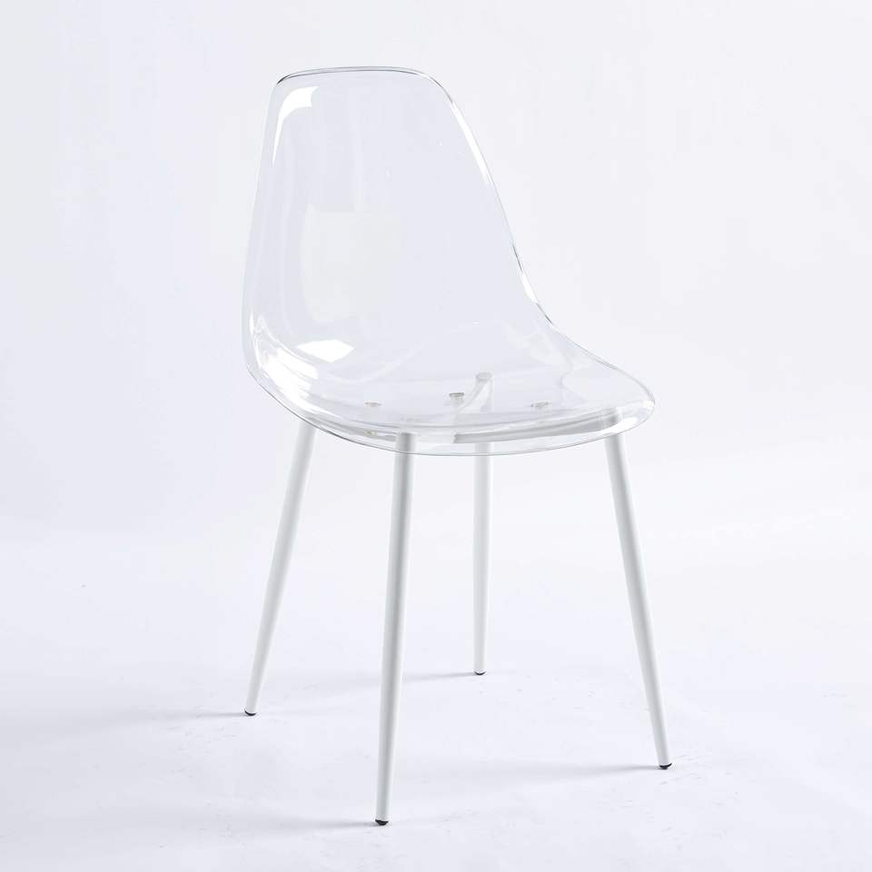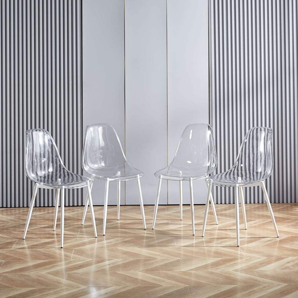 Set di 4 Sedie da Pranzo con Gambe in Metallo e Sedute in Plastica