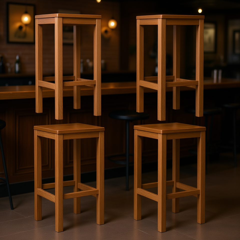 Solid Teak Wood Bar Stools Set Of 4 Natural Finish Durable Modern Design For Home Bar Commercial Use