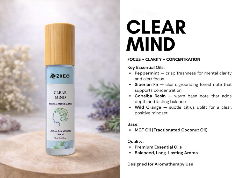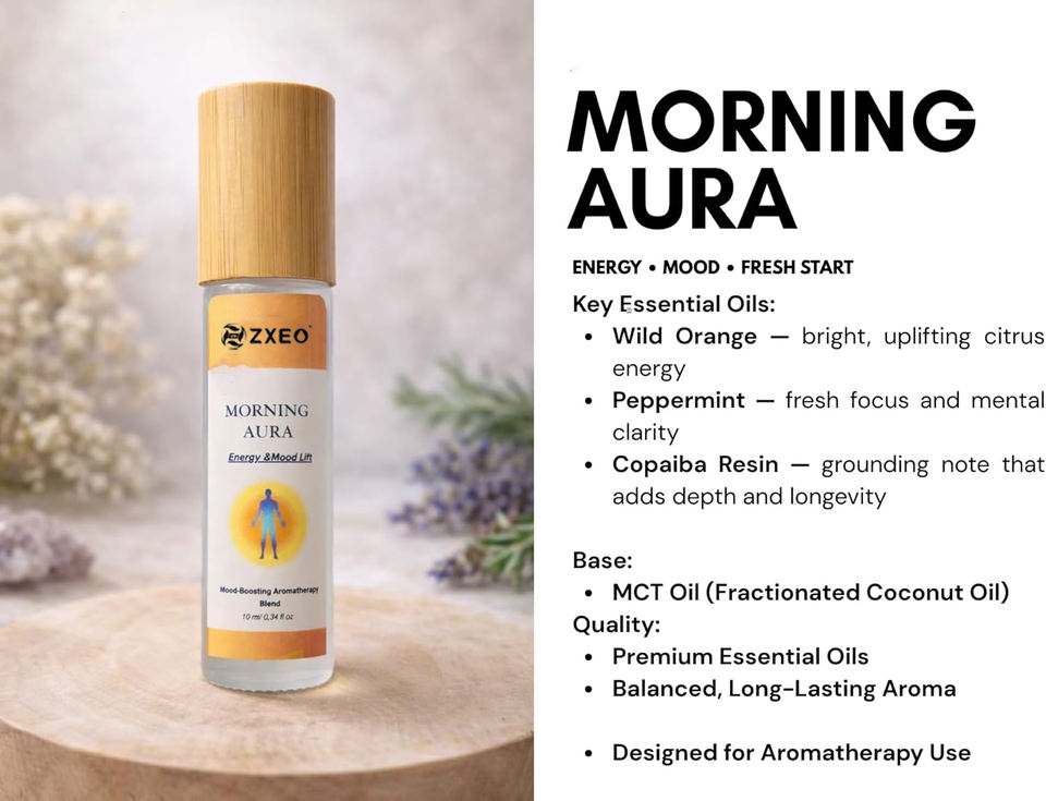 Set di 4 Oli Essenziali Roll-On per Sonno, Energia, Respirazione e Concentrazione, Kit Aromaterapia, Miscele Naturali con Olio MCT