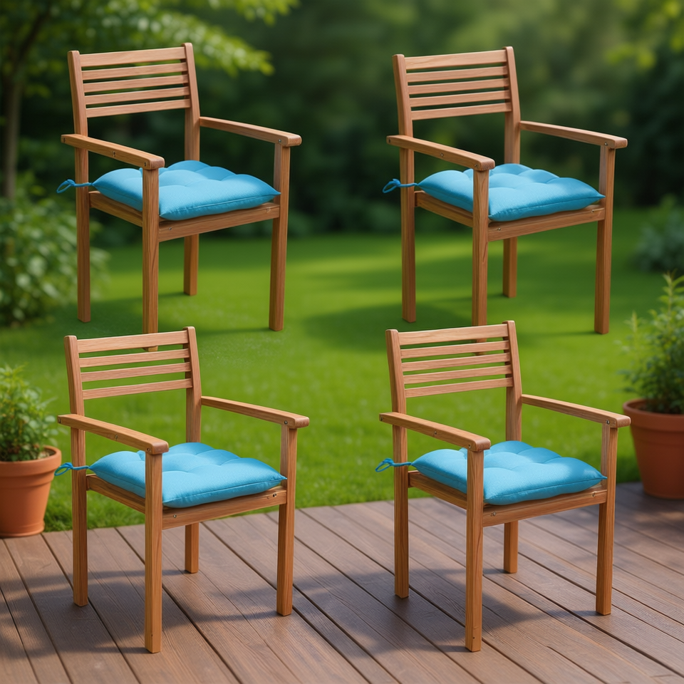 Set di 4 sedie da patio in legno di teak, colore azzurro, mobili da giardino per esterni, design rustico resistente, gambe affusolate